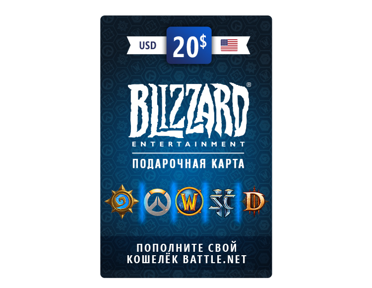 Карта пополнения баланса Battle.net 20 USD (USA) [Цифровая версия]