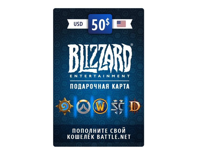 Карта пополнения баланса Battle.net 50 USD (USA) [Цифровая версия]